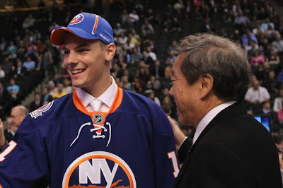 Der NFHL-Draft 2011 ist gelaufen! Einen Tag nach Rückkehr von einem 14tägigen Europa-Urlaub fügte der bestens erholte Islanders-GM Frank insgesamt zehn Nachwuchskräfte der Organisation hinzu.Wie allerdings aus gut unterrichteten Insider-Quellen publik wurde,soll das diesjährige Spektakel aus Sicht des GM nicht ganz so rund wie letztes Jahr gelaufen sein. Indikatoren dafür könnten der Trade des zweithöchsten Picks (54th OV) an Buffalo sowie die Tatsache sein,daß Frank entgegen seiner sonstigen Gewohnheiten mit den Top-Picks Verteidiger gezogen hat. Laut besagter Quellen soll er z.B. mit dem 37th OV eher an den Forwards Alexander Khokhlachev und Victor Rask interessiert gewesen sein!